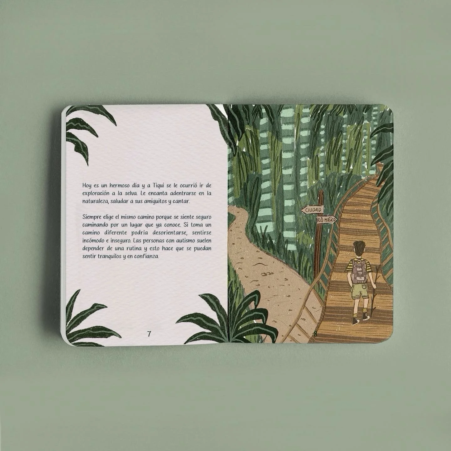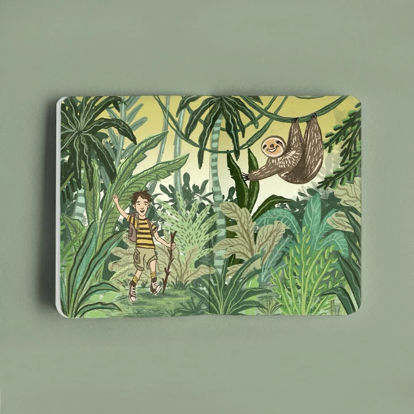 This project, created as part of my Master's in Illustration, tells the story of an autistic kid and his experiences in the jungle. Through this narrative, I try to explain certain behaviours of this conditions and bring awareness in a thoughtful and creative way.